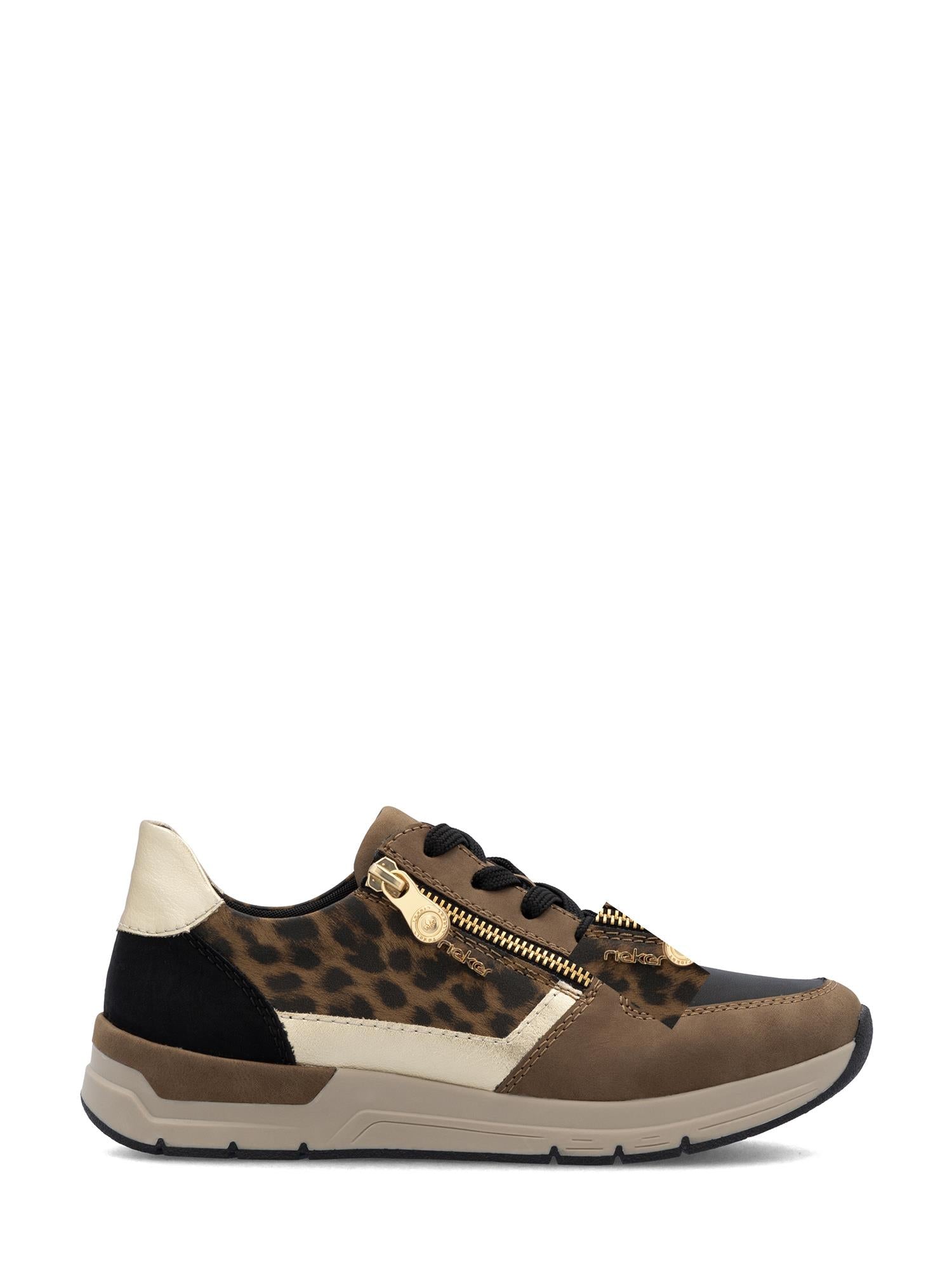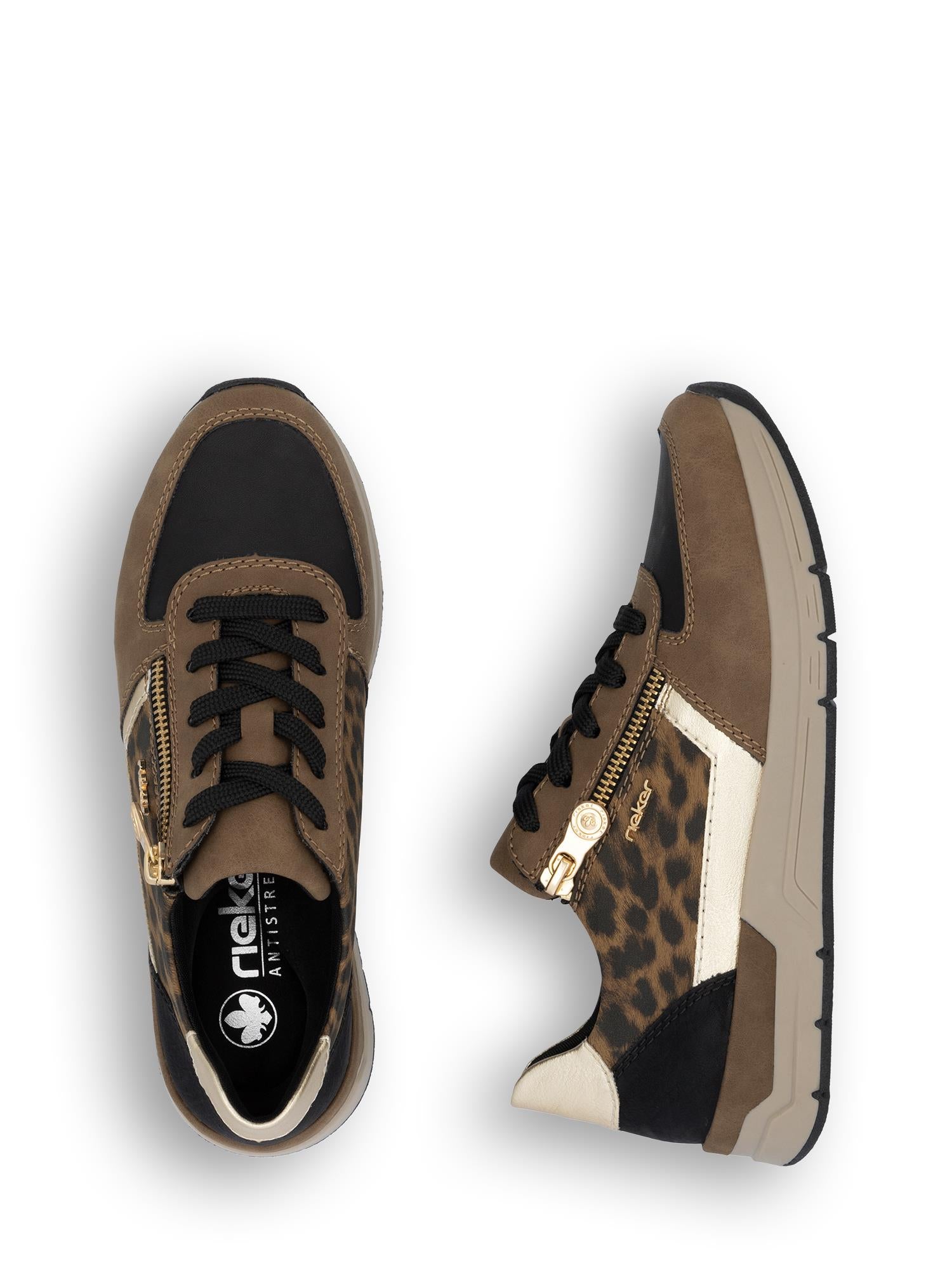Rieker Mionnet Soft Zip er en stilren sneaker i brun skinnimitasjon som kombinerer komfort og praktisk design. Den har klassisk snøring foran for optimal passform og glidelås på siden som gjør det enkelt å ta skoen av og på. Det myke tekstilfôret gir en behagelig følelse gjennom hele dagen, mens den uttagbare, mykstoppede innersålen gir ekstra demping og støtte. Den lette og fleksible yttersålen i gummi gir godt grep på ulike underlag, perfekt for både byvandring og fritid.