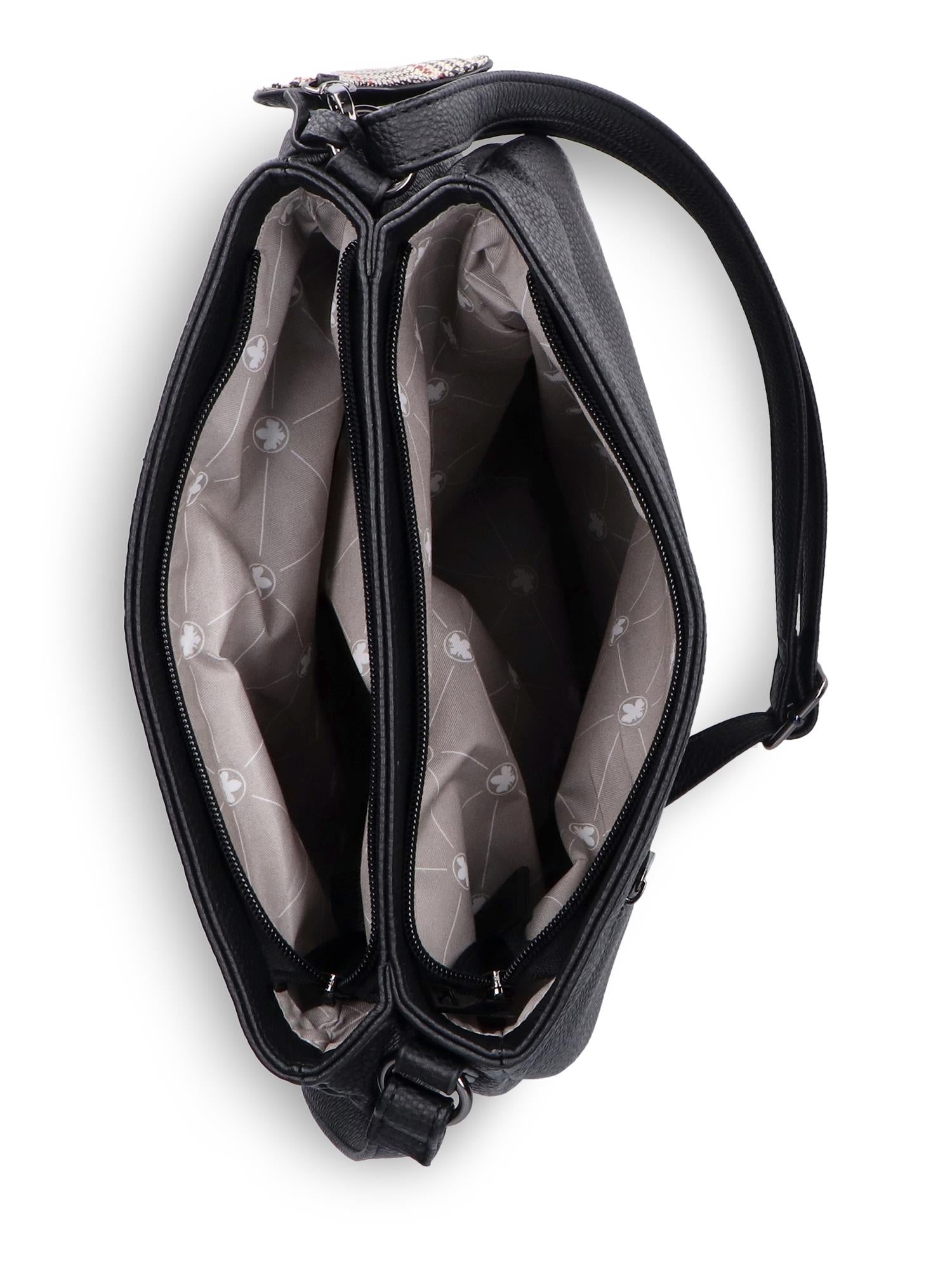 Denne stilrene skuldervesken fra Rieker kombinerer klassisk design med praktiske løsninger. Vesken er laget i sort imitert skinn med en diskret struktur som gir et elegant uttrykk. Den romslige innsiden har glidelåslukking og flere mindre lommer som gjør det enkelt å holde orden på nøkler, mobil og andre nødvendigheter.