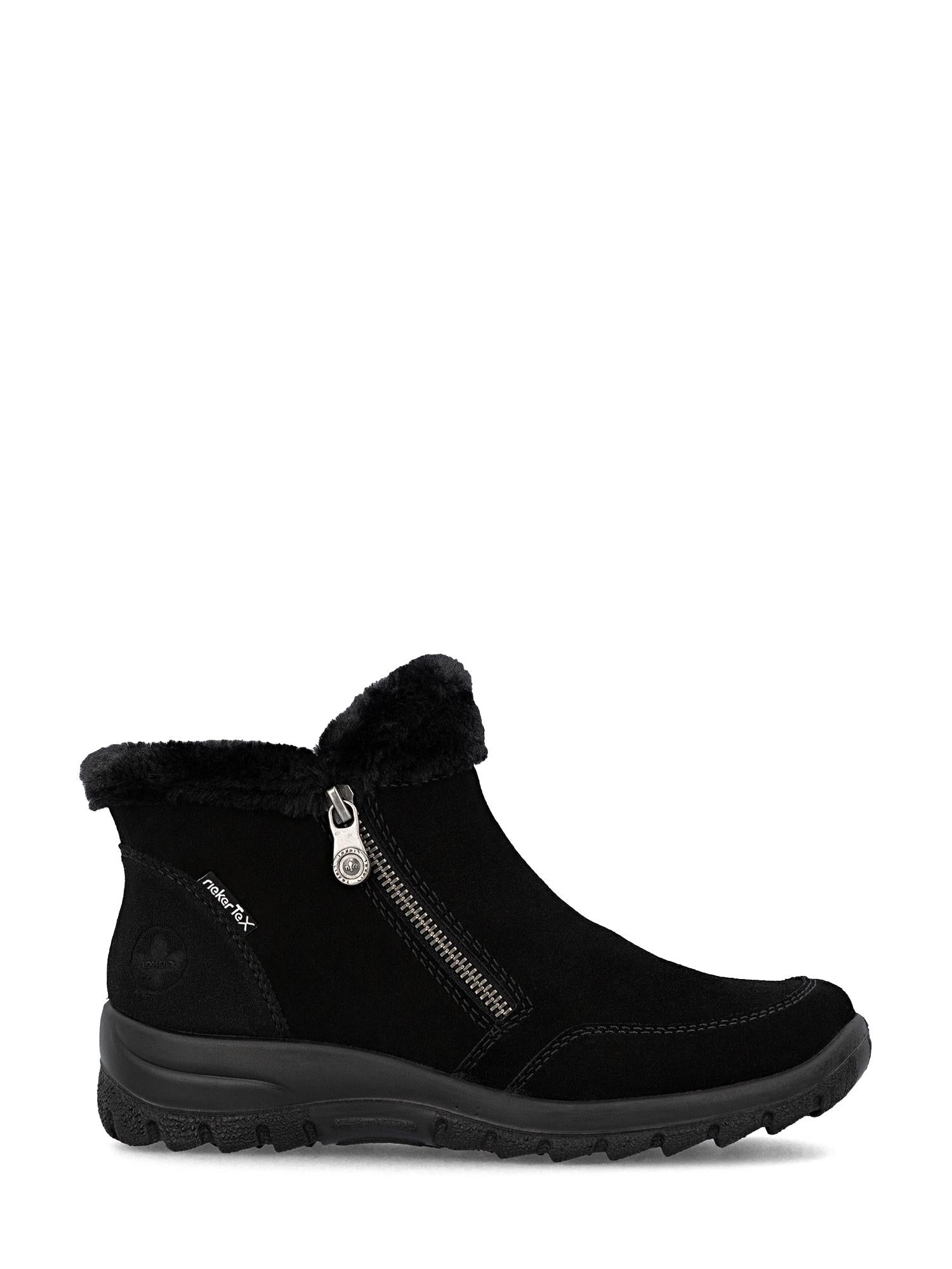 Materiale: Overdel i semsket skinn, innside i tekstil, varmt fôr med RiekerTEX-membran, PU-yttersåle