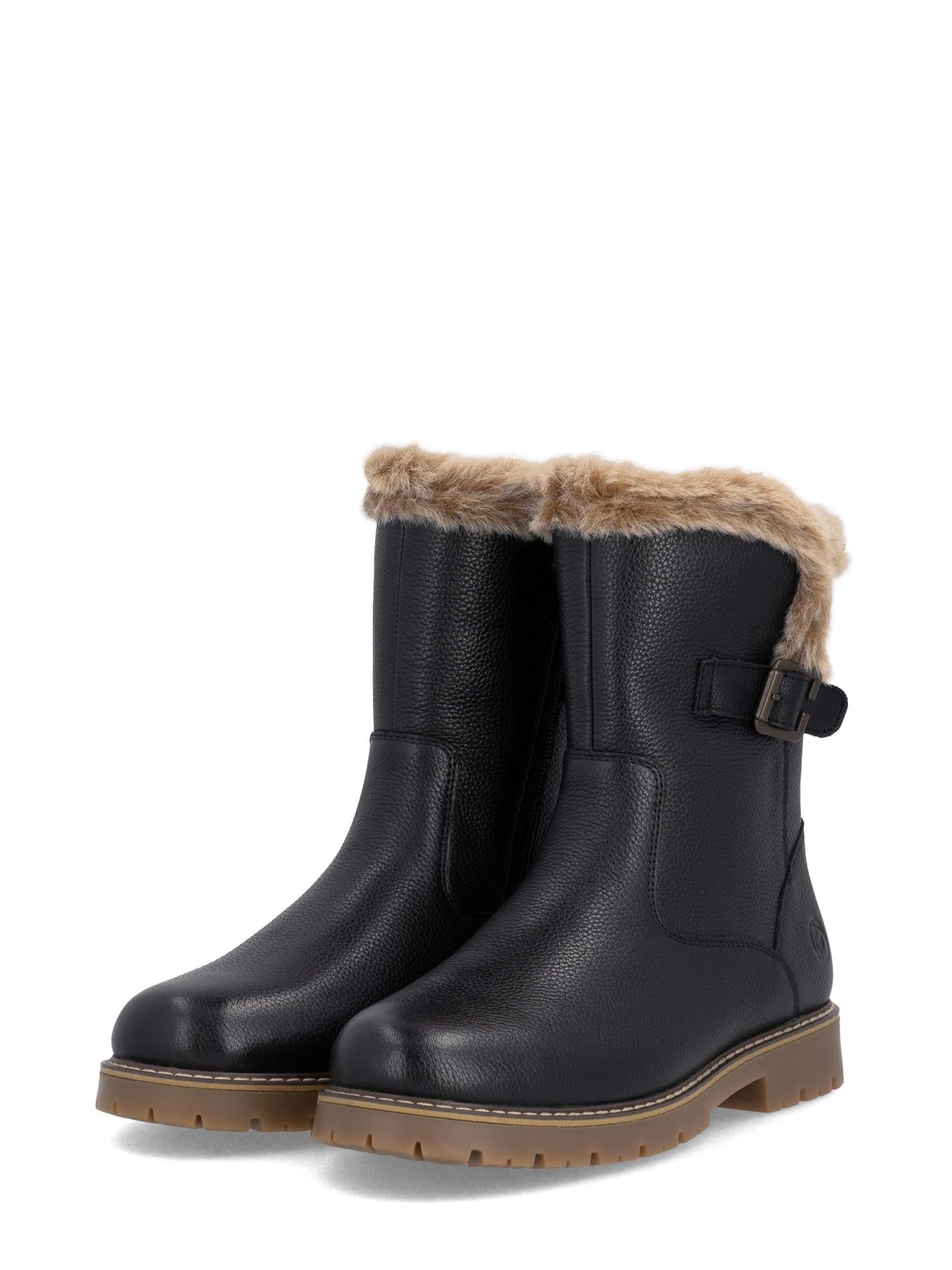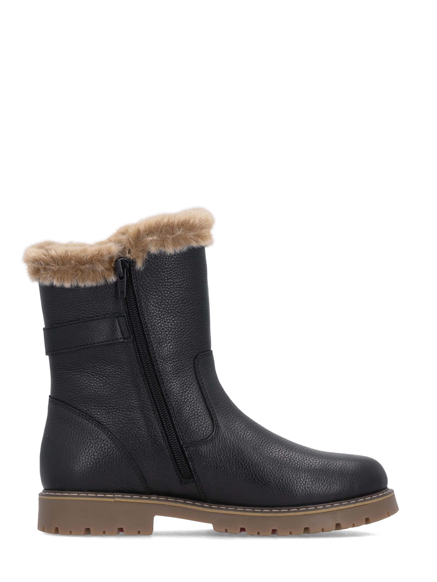 Rieker FlipGrip Skinnstøvel er en funksjonell og elegant vintersko laget i ekte skinn. Den er foret med varmt materiale og har en myk pelskant som gir både komfort og varme gjennom vinteren. Overdelen i skinn kombineres med solide sømmer og en fleksibel yttersåle som sikrer slitestyrke og lett gange.