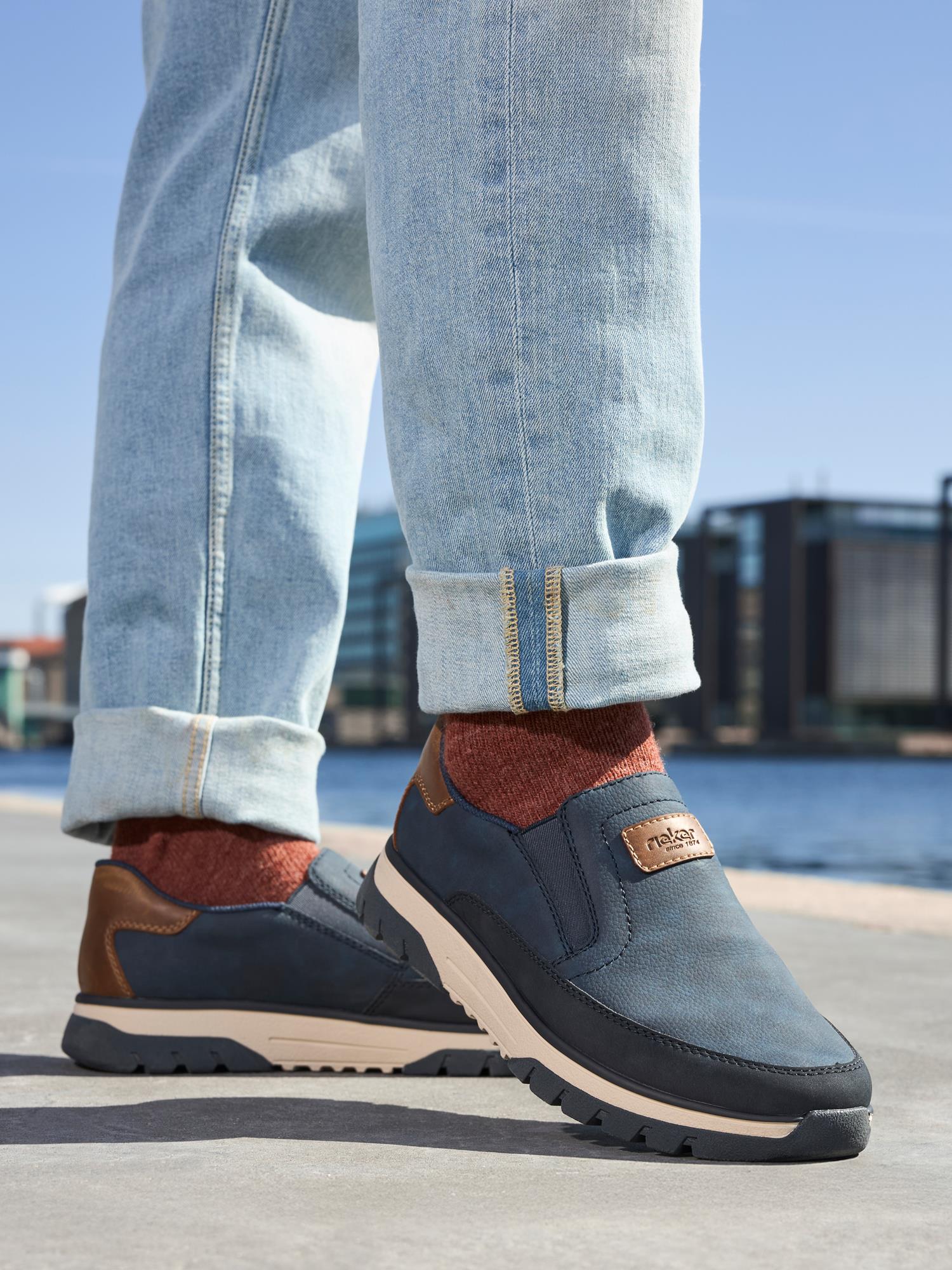 Rieker Modano Navy kombinerer tidløs komfort med et moderne og anvendelig design. Denne modellen i blått kunstskinn er skapt for menn som ønsker en lett og fleksibel sko til hverdagsbruk. De elastiske innfelte panelene på sidene gjør skoen enkel å ta av og på, samtidig som de gir en behagelig passform som tilpasser seg foten. Modellen har ekstra bredde (H), som gir mer plass og komfort for deg med bredere føtter. Innersålen i myk, avtakbar Memosoft-skum gir optimal støtdemping og individuell komfort gjennom dagen, mens den lette CM-EVA/gummisålen bidrar til fleksibilitet og god demping på ulike underlag.