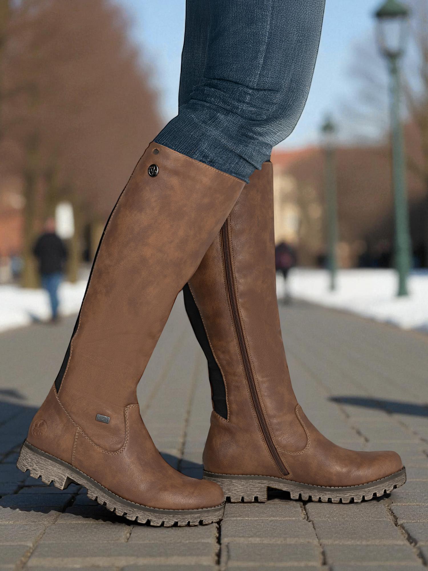 Rieker Merida er en stilig og funksjonell støvlett som gir både varme og komfort på kalde vinterdager. Den varme brune overdelen er laget i slitesterkt syntetisk materiale kombinert med elastisk tekstil bak, som gir fleksibilitet og en behagelig passform rundt leggen. Den pustende og vanntette RiekerTEX-membranen beskytter mot fuktighet, mens det myke ullfôret i virgin wool holder føttene varme hele dagen. Den innvendige glidelåsen gjør skoen enkel å ta av og på, og Antistress-sålen sørger for letthet, støtdemping og fleksibilitet ved hvert steg. En perfekt kombinasjon av klassisk design, praktiske detaljer og vinterkomfort.